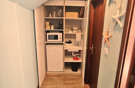 Pequeno Almoço/Lanche: Colocamos a disposição de cada suíte e Estúdio os produtos básicos para a confeção do pequeno almoço ou lanche, a saber: café, chá, leite, fruta da época.